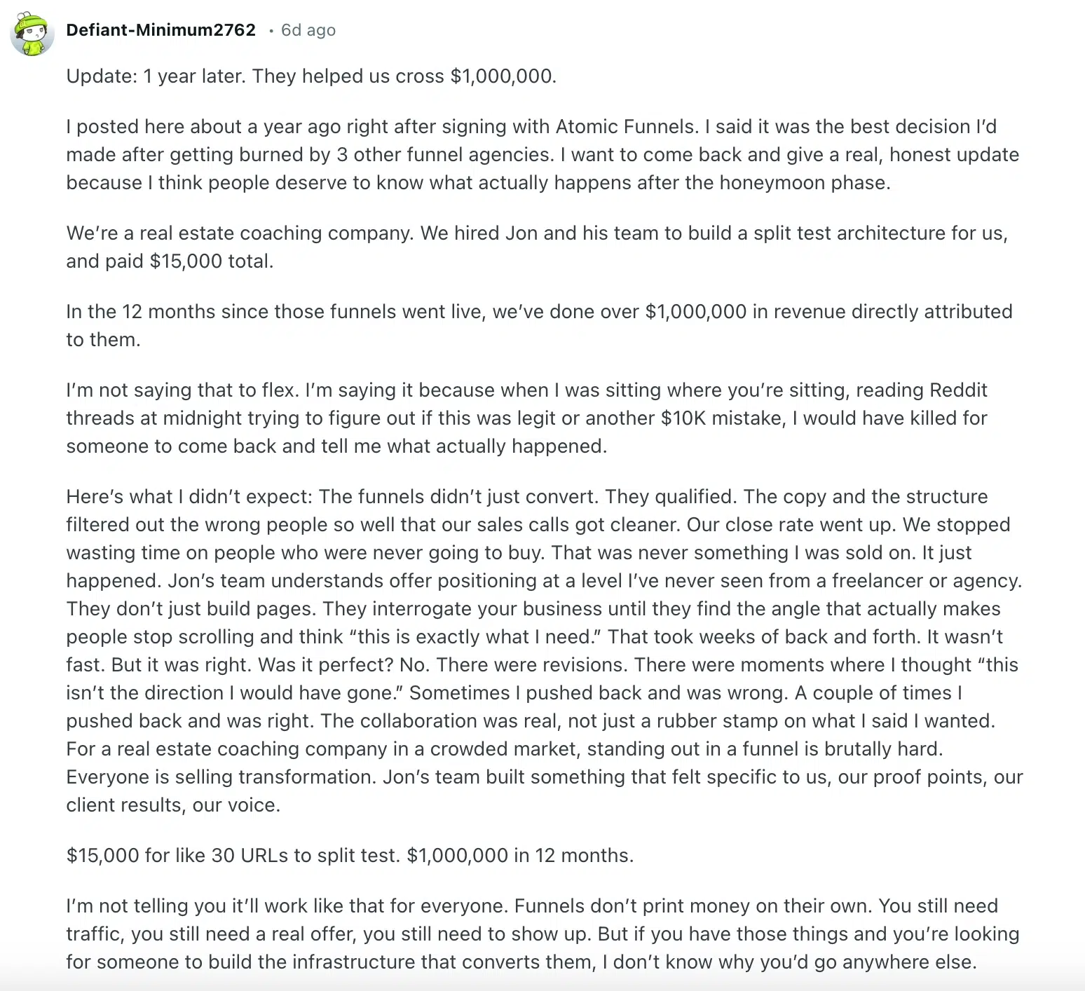No, Justin's services start at $2,500/mo and range up to $5,000/mo, month to month. Included in your Atomic Funnels development package is a 1 on 1 strategy session with Justin, so you can see if his services are right for you.